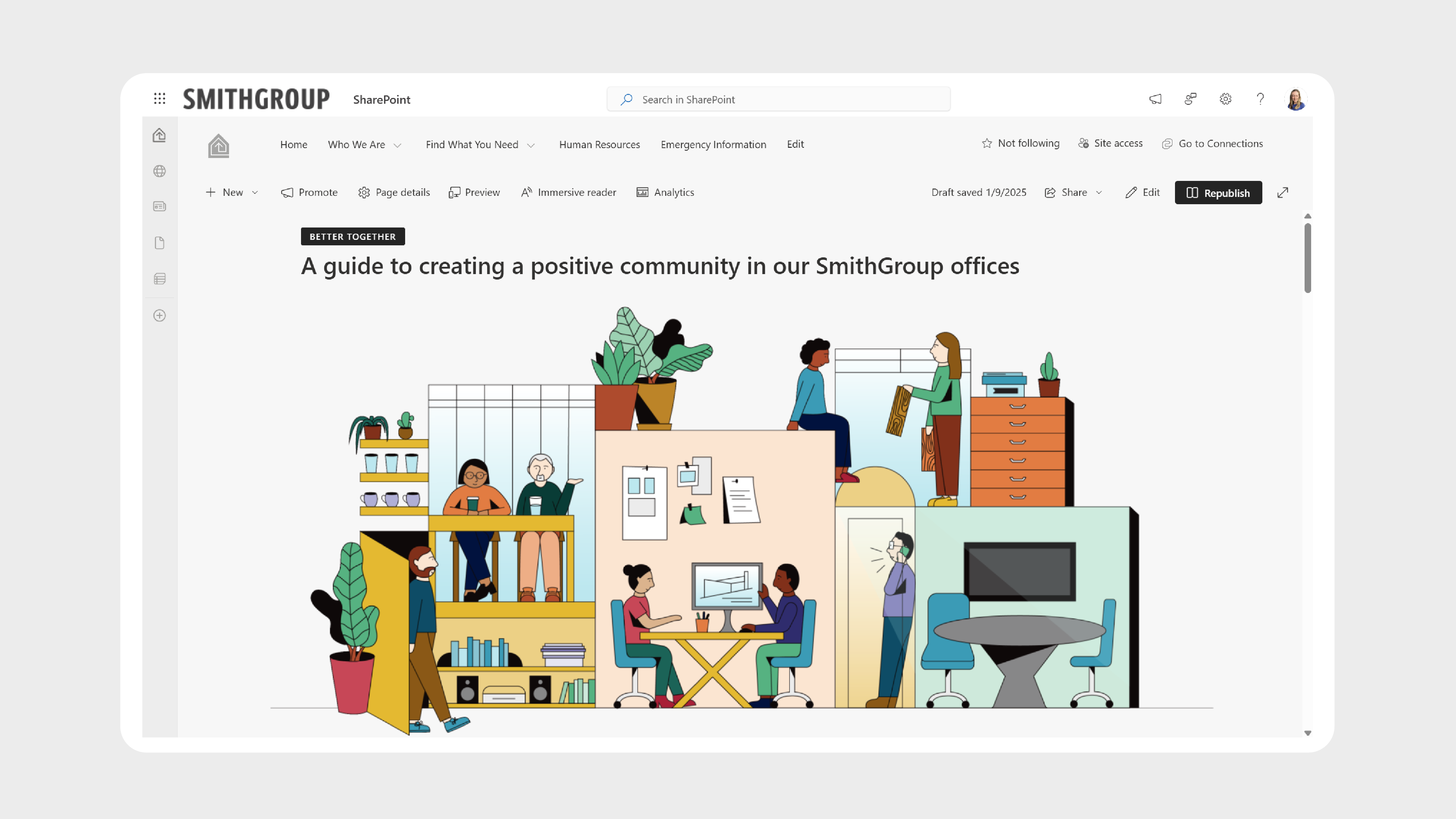 Work completed at SmithGroup, an integrated design firm in the A&E industry, to develop the firm’s branded illustration style.